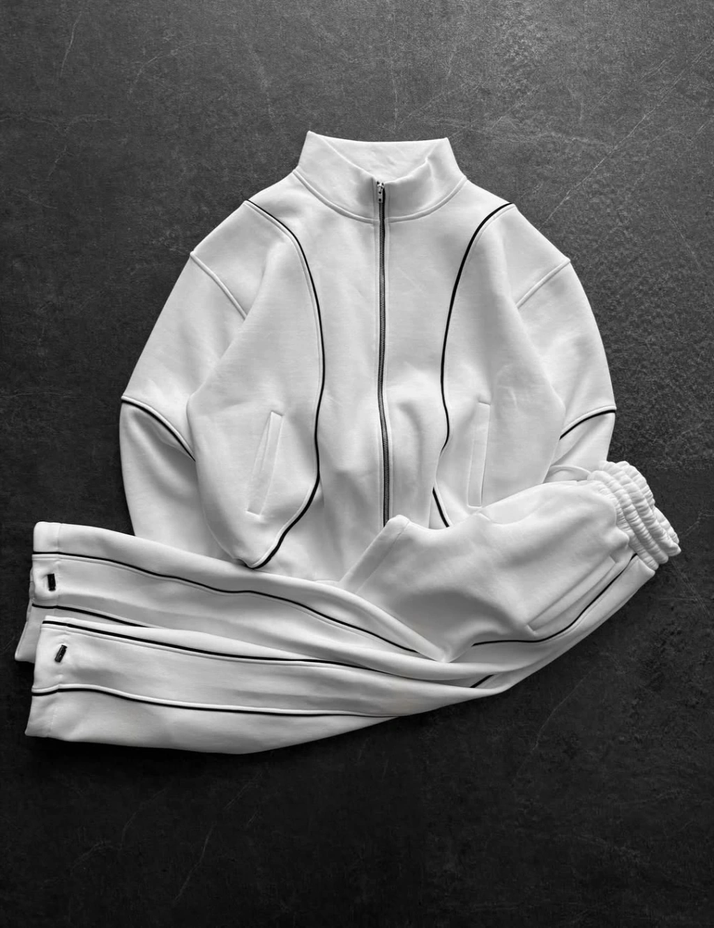 Orta Şerit Detay Eşofman Takım Beyaz