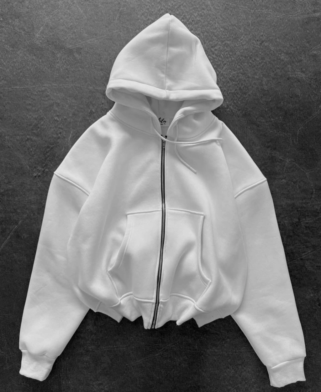 Yarasa Kalıp Kapüşonlu Hırka Beyaz